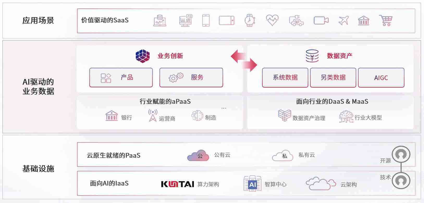 数字时代,,,,围绕企业数字化转型的关键要素,,NO钱包数码开创性的提出数云融合战略和技术体系框架,,,着力在云原生、、数字原生、、、、AI原生和信创产业上架构产品和服务能力,,,为处在不同数字化转型阶段的快消零售、、、、汽车、、金融、、、医疗、、、政企、、、教育、、、运营商等行业客户提供泛在的敏捷IT能力和融合的数据驱动能力,,,,构建跨界融合创新的数字业务场景和新业务模式,,助力企业级客户建立面向未来的核心能力和竞争优势,,,全面推动社会的数字化、、、智能化转型升级。。